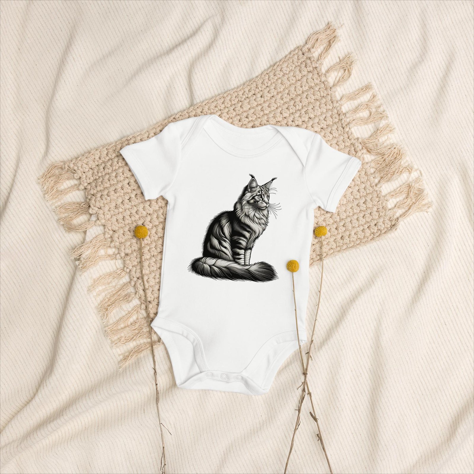 • 3 boutons-pression sans nickel, de couleur naturelle, à l’entrejambe